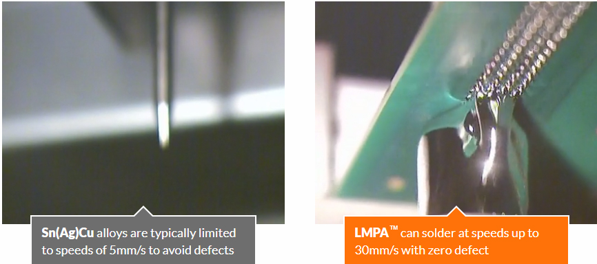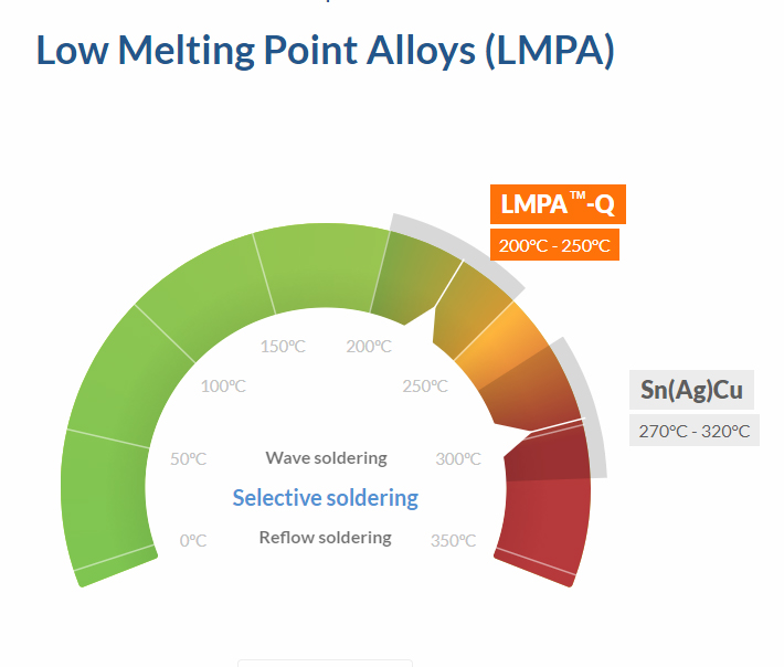 LMPA™ is short for Low Melting Point Alloys™. These alloys allow you to use soldering temperatures that are considerably lower than for the traditional lead-free Sn(Ag)Cu (SAC) alloys.